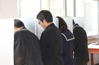 3月11日。生徒会役員選挙の投票日です。来年度の南陵中を誰にリードしてもらおうか真剣に考えて投票していました。なお、毎回記載台と投票箱は市の選挙管理委員会からお借りして行っています。