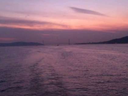 船のデッキからの景色です。明石海峡大橋が見えます。写真では小さいですが…