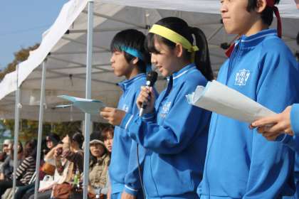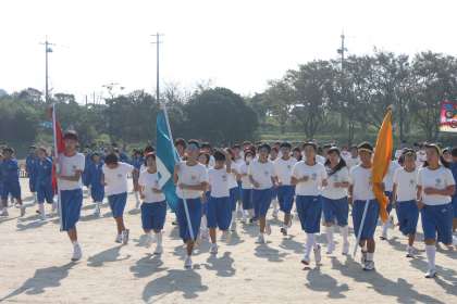 晴天の空の下、体育祭が開催されました。 開会式の様子です。