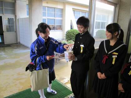本日より13日(金)まで、朝8時〜8時15分の間、東西昇降口に立って、東日本大震災「義援金活動」を行っています。