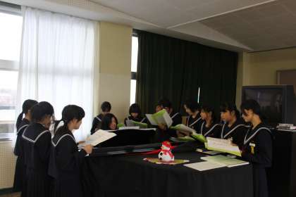 1年、音楽の授業です。 卒業式の歌を伴奏に合わせて歌っています。