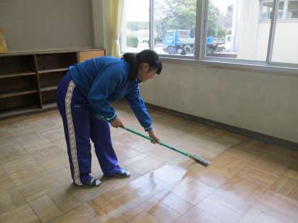その後、美化委員が中心となり、ワックスをしっかりかけました。
