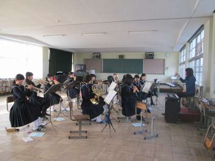 サッカー部,吹奏楽部です。それぞれ大会に向けて、練習に力が入ります。大会では,日ごろの練習の成果がだせるようにがんばってください。