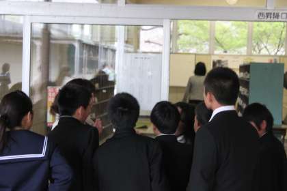 期待と不安の中、保護者の方とともに新入学生が本校に来ました。