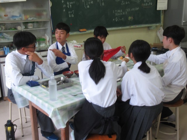 2年生の生徒が、家庭科の時間におはぎを作っていました。楽しそうに、美味しそうに過ごす様子が見られました。