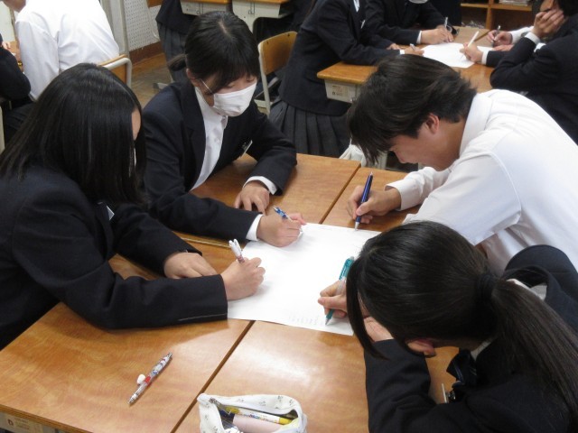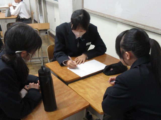 2年生の学活では、楽しそうな声が聞こえていました。チームで協力し、お題に沿ったテーマで言葉を集めていました。「そ」で始まる食べ物だったり、海の生き物だったり‥。他のチームの回答をあとで聞いているときには「あぁ、それもあった!」「なるほど」という反応があり、勝利のチームには温かい拍手が送られていました。新学期が始まって1週間、クラスが変わった緊張感の中で過ごしていた時間が多かったので、少しほっとできる時間になったのではないでしょうか。