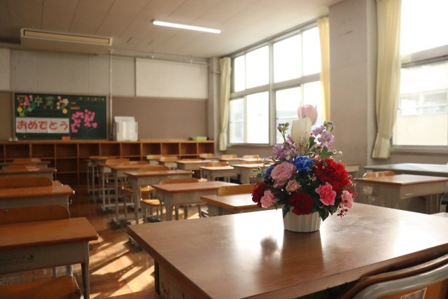 朝の様子です。卒業生を迎える準備が整いました。