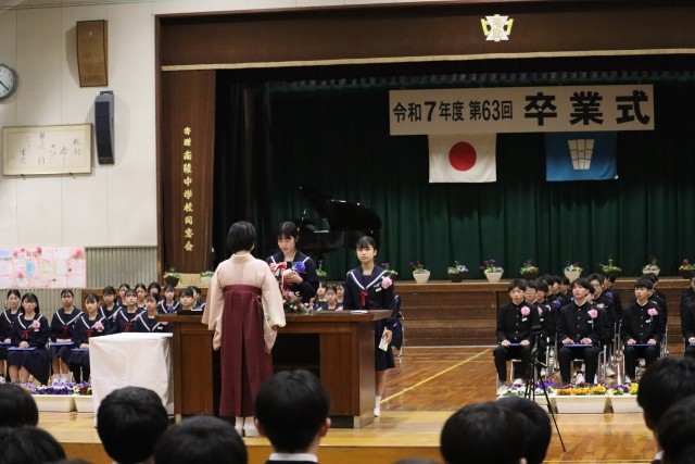 73名の卒業生が、立派な姿で南陵中学校から旅立ってくれました。これからの人生が幸多きことを心より願っています。