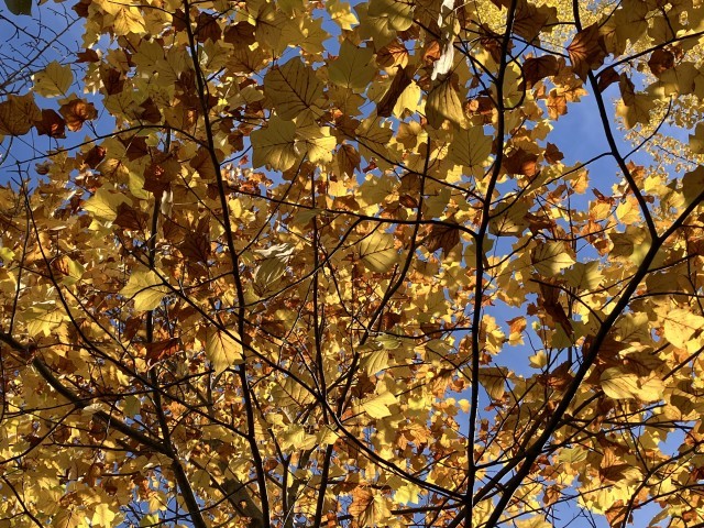 …が、しかし澄んだ空に木々の秋色がよく映える。美しい。