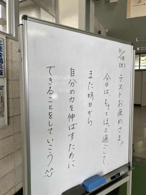 中間テスト1日目 みなさんのがんばりを応援しています。