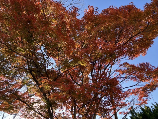 …が、しかし澄んだ空に木々の秋色がよく映える。美しい。
