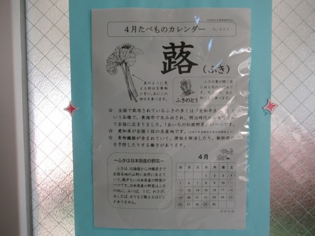 栄養教諭から「南陵中生よ、アスパラガスになれ!!」とのメッセージ。